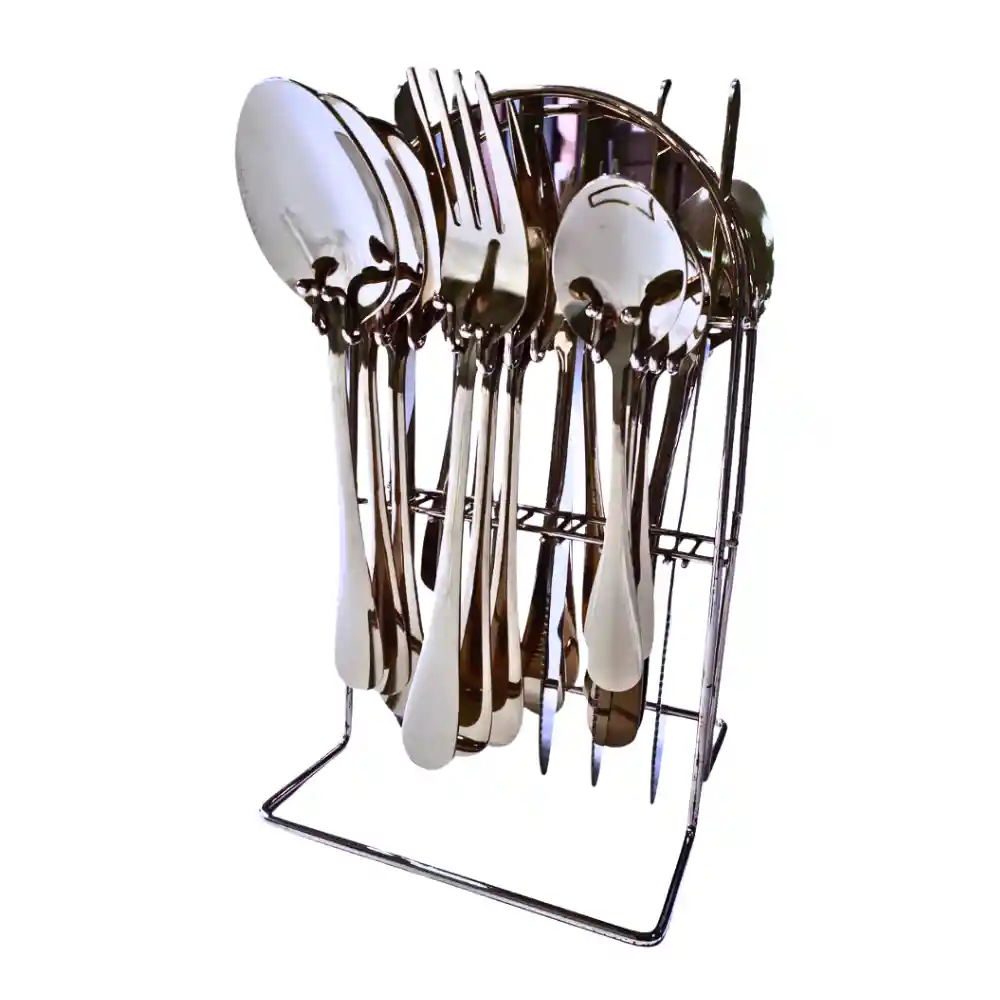 Dimensiones(alto,largo,ancho):25 *15 *13 cm/9,84*5,91*5,12 pulgadas. Piezas: Este conjunto incluye tenedores, cuchillos, cucharas de mesa y cucharas de postre, proporcionándote todo lo que necesitas para servir y disfrutar de tus comidas. Elegante: Con un diseño contemporáneo y elegante, estos cubiertos añaden un toque de sofisticación a tu mesa, ya sea en ocasiones especiales o en tu día a día. Acero Inoxidable de Calidad Superior: Fabricado con acero inoxidable de alta calidad, estos cubiertos son resistentes a la corrosión, duraderos y fáciles de limpiar. Marca: IFAJOOR Material: Acero Inoxidable Incluye: 6 * cuchillo de comedor, 6 * tenedor para comer, 6 * cuchara para comer, 6 * cuchara de té, 1 * rejilla para colgar Especificaciones: 24 piezas colgante conjunto (plata)