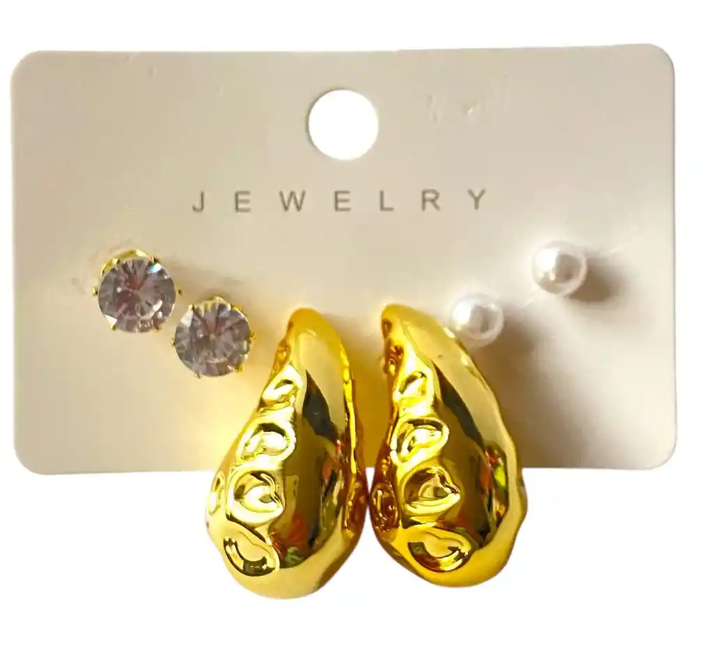 Set de 3 Topos Gota grande troquelada, perlita y circona dorada