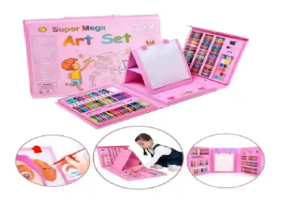 Set De Arte Maleta Para Niños 208 Piezas Creatividad Dibujo Perfecto para los niños que recién comenzaron a aprender a dibujar. Ayuda a los niños a expresar, crear y conectar a través de juegos coloridos. Está equipado con un caballete emergente de dos lados incorporado, lo que facilita que tu pequeño coloree y cree en cualquier lugar donde pueda abrir su estuche. Este Kit contiene muchos suministros de arte para dibujar y pintar, proporcionando una manera ideal para que los niños exploren su mundo artístico y aumenten su inteligencia. En estos tiempos donde se le da prioridad a la Tablet y tv para mantener ocupados a nuestros niños es muy importante ejercitar su capacidad mental y motriz. CARACTERISTICAS: •Desarrolla la coordinación de manos y ojos de los niños, así como sus habilidades motoras finas. •Materiales de alta calidad que son aptos para niños. No tóxicos y sin olor, seguros para que los niños jueguen. •Contiene 208 piezas que incluyen todo tipo de herramientas de dibujo. •Material: plástico •Tamaño: 40,5x30x5 cm/15,94x11,81x1,97 pulgadas CONTENIDO: •48 x Crayones pasteles •36 x tubos acuarela •30 x Clip de papel •24 x lápices •24 x lápices de color •18 x tortas de acuarela •1 juego x papel A4 •1 x pegamento líquido •1 x goma de borrar •1 x lápiz sacapuntas •1 x dibujo lápiz •1 x lápiz •1 x paleta •1 x pegamento blanco •1 caballete de doble cara Nota: 1.Puede haber una diferencia debido a la medición manual. (MEDIDAS APROXIMADAS) 2.El color de los elementos reales puede diferir ligeramente de las imágenes de la lista debido a la pantalla de la computadora diferente, gracias por su comprensión. 3.Imagen sujeta a cambios.
