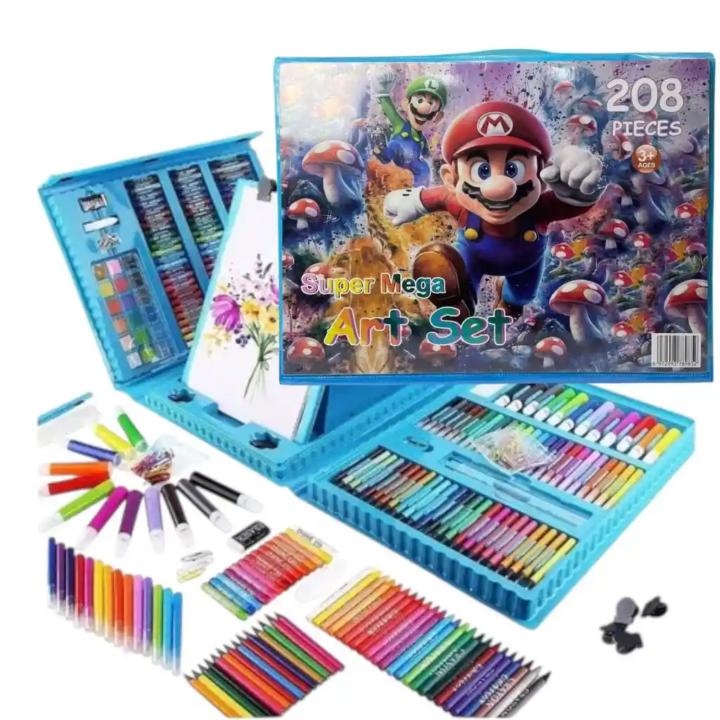 Seguro, compacto, portátil: Material ecológico de alta calidad, no tóxico e inodoro. Una gran funda organizadora triple con asa para un transporte más cómodo. Un bloc de dibujo reversible para que dos niños lo usen simultáneamente. El mejor regalo: Ideal para cumpleaños y vacaciones, el juego de arte te permite dar el regalo de imaginación y creatividad a tu pequeño artista favorito. Este juego también es un gran compañero para vacaciones familiares, cumpleaños y navidad. Detalles de los kits de arte: Color: Azul - Rosa Tamaño de la caja: 31 x 5.5 x 40.5cm Peso total: 2.97 libras. El paquete incluye: 24 crayones 18 pasteles de acuarela. 48 pasteles al óleo. 12 bolígrafos de acuarela gruesos. 24 bolígrafos de acuarela fina. 24 lápices de colores. 10 papeles de dibujo. 4 clips. 1 borrador. 1 pegamento. 1 esponja 1 lápiz. 1 regla. 1 sacapuntas. 1 caballete triple de doble cara. Algunos clips de papel