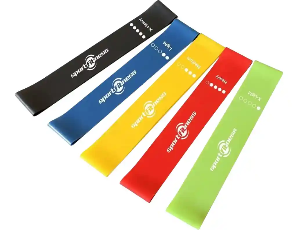 Un Set de 5 Bandas elasticas X5 Marca Sport Fitness