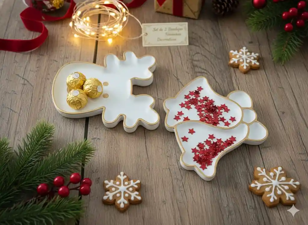 Set de Bandejas de Navidad Dorada x 2 unidades Material concreto