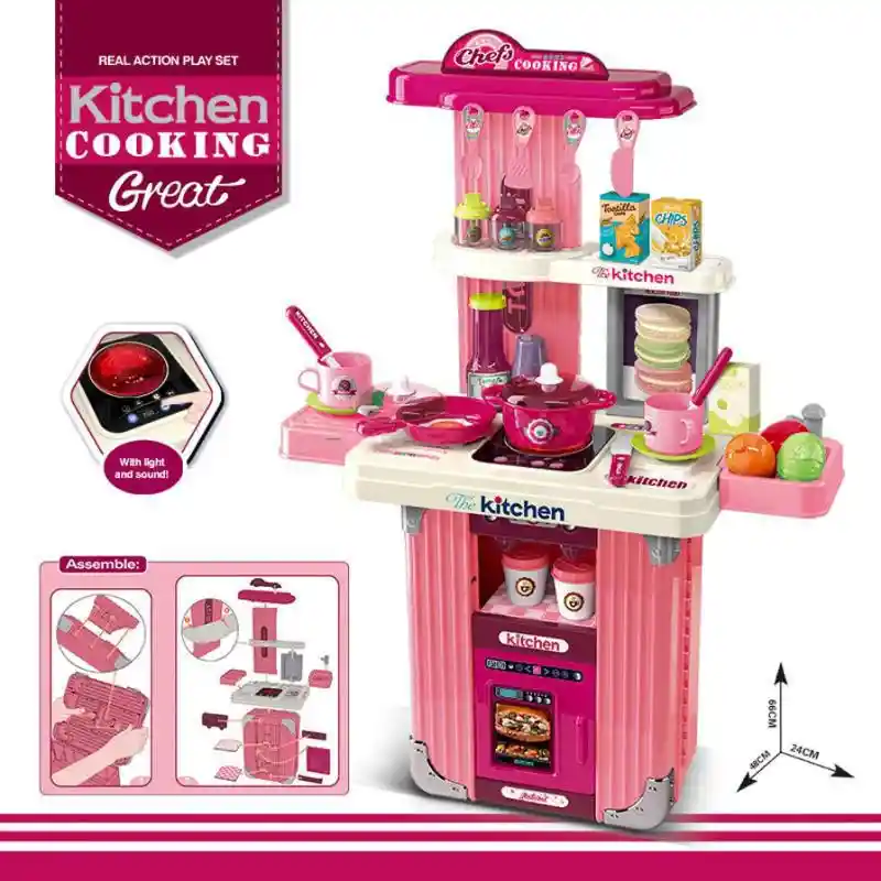 Este juego de cocina tiene muchas funciones y muchos utensilios. Tanto el horno como el dispensador de café logran crear un entorno realista Fácil de disfrutar para un niño, también puede proporcionar una tarde entera de diversión para todo un grupo de pequeños chefs. Espectacular Cocina Maletín para Niñas -Cocina con luz y sonido -Vajilla -Legumbres -Cubiertos -Se Convierte en Maletin Portatil con Ruedas. -Plástico ABS ecológico, seguro y no tóxico MEDIAS APROXIMADAS: Peso: 1.5 k Dimensiones : 31x24x14 cm