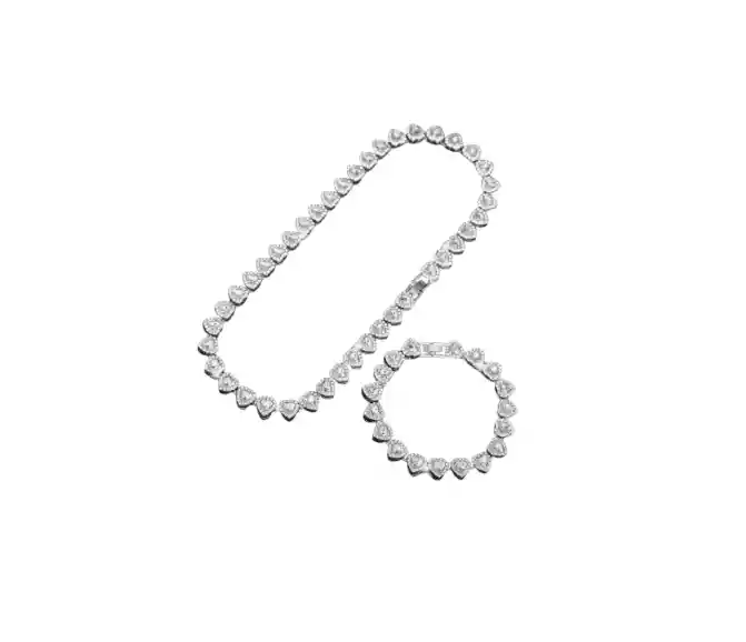 Set de Collar y Pulsera con Gema Elegancia atemporal para ocasiones especiales 🌟 Este conjunto de joyería deslumbra con su diseño clásico y sofisticado. Cada pieza está adornada con gemas transparentes, cuidadosamente engarzadas en metal tono plata, creando un efecto brillante y refinado. 👑 Detalles del producto: Incluye collar largo y pulsera a juego Gemas tipo diamante con corte lágrima, de gran tamaño y alto brillo Montura en tono plata o platino, ideal para looks formales Diseño continuo que aporta armonía y lujo Perfecto para novias, eventos de gala o como regalo elegante. ¡Una joya que roba miradas! Collar 45cm pulsera 20 cm