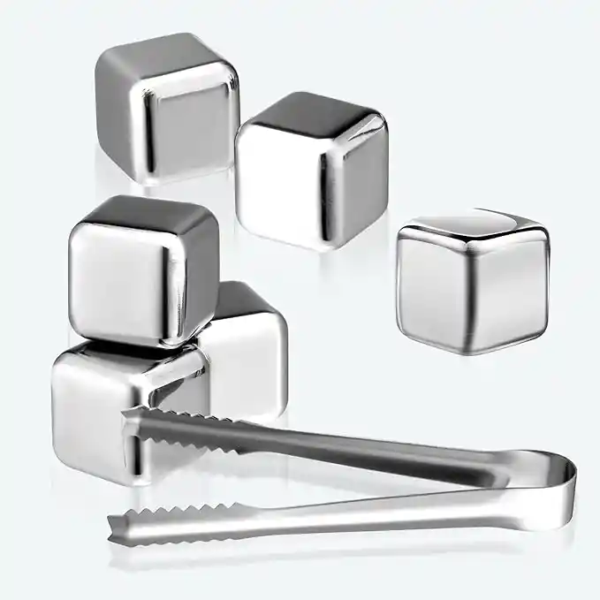 SET DE CUBOS DE HIELO X8 Bebidas refrescantes rápidamente: los cubitos de hielo de metal reutilizables de acero inoxidable Yeisall pueden enfriar el vino, la cerveza, la bebida de bourbon sin dilución, los cubitos de hielo no se derriten ni impartirán ningún sabor a tus bebidas. Puede contener tu bebida fría durante más tiempo. Material de seguridad: está hecho de material 100% seguro de grado A+polietileno de alta calidad, que mantiene la bebida segura y limpia. Estas piedras de whisky son inodoras, no porosas, aptas para lavavajillas y nunca se oxidan, están hechas de acero inoxidable 304 de grado alimenticio. Diseño personalizado, conveniente para los usuarios: la caja personalizada se utiliza para colocar cubitos de hielo, que es fácil de sacar y evitar que el cubo de hielo absorba olores peculiares o olores del congelador y se pegue. El kit de cubitos de hielo de acero inoxidable yeisall está equipado con clips para una fácil sujeción para garantizar la limpieza y la higiene. Nacido para festivales: su aspecto moderno y lujoso hace que sea la mejor opción para familiares y amigos. Regalo perfecto para cumpleaños, aniversario, día de San Valentín, día del padre, Acción de Gracias, Navidad y Año Nuevo Los cubitos de hielo reutilizables de acero inoxidable tienen múltiples funciones. No solo puede enfriar bebidas y se puede utilizar para compresas frías para ayudar a reducir la hinchazón también.