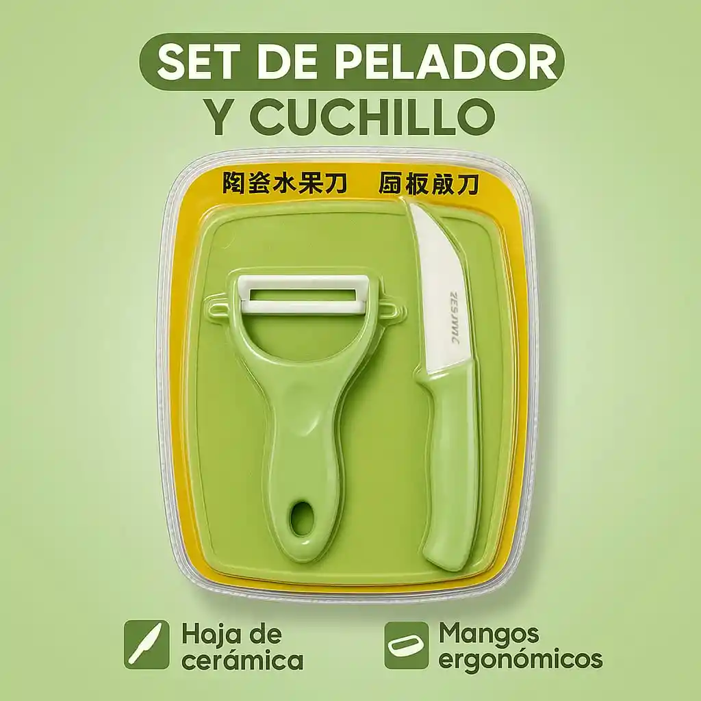 🔪 Set de Cuchillo y Pelador de Cerámica con Tabla de Corte – IGS‑18 Este práctico set de cocina incluye todo lo que necesitas para cortar, pelar y preparar frutas y verduras de manera rápida y eficiente. Gracias a su cuchilla de cerámica de alta calidad, mantiene un filo duradero y no altera el sabor de los alimentos. Características principales: 🥝 Incluye 3 piezas: cuchillo de cerámica, pelador y tabla de corte. 🔪 Cuchillo con hoja de cerámica: ideal para cortar frutas y verduras sin esfuerzo, manteniendo su frescura. 🥕 Pelador de cerámica: perfecto para retirar la piel de frutas y vegetales de forma limpia y precisa. 🧼 Fácil de limpiar: los materiales permiten un enjuague rápido con agua y no retienen olores. 🪶 Diseño compacto y ligero: cómodo de manipular y fácil de guardar. Usos recomendados: ✔️ Cortar frutas frescas como manzanas, peras, mangos, kiwi, etc. ✔️ Pelar verduras como zanahorias, pepinos, papas y calabacines. ✔️ Preparar alimentos de forma más higiénica y eficiente. ⚠️ Nota importante: La hoja de cerámica es resistente, pero no apta para huesos, alimentos congelados o cortar sobre superficies muy duras. Se recomienda lavar y secar bien después de cada uso para prolongar su vida útil.