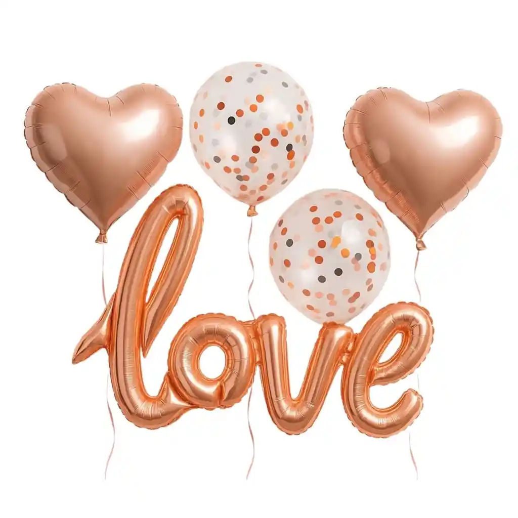 🎈💖 Set de Globos “Love” – ¡Decora con amor! 💕✨ Haz que cada celebración se llene de romance y alegría con este encantador set de globos temáticos. Perfecto para aniversarios, propuestas, San Valentín o cualquier ocasión donde el amor sea protagonista. 💘 Incluye 5 globos: 1 globo grande de 42” con la palabra Love en cursiva 2 globo corazón de 13” en tono rosado metálico 2 globos redondos de 12” con confeti brillante 🎀 Tonos rosa dorado y rosado que aportan elegancia y dulzura 🎉 Se pueden llenar con aire o helio 💡 Úsalo para decorar mesas, fondos de fotos, sorpresas románticas o fiestas temáticas. ¡Inspira sonrisas y momentos inolvidables!