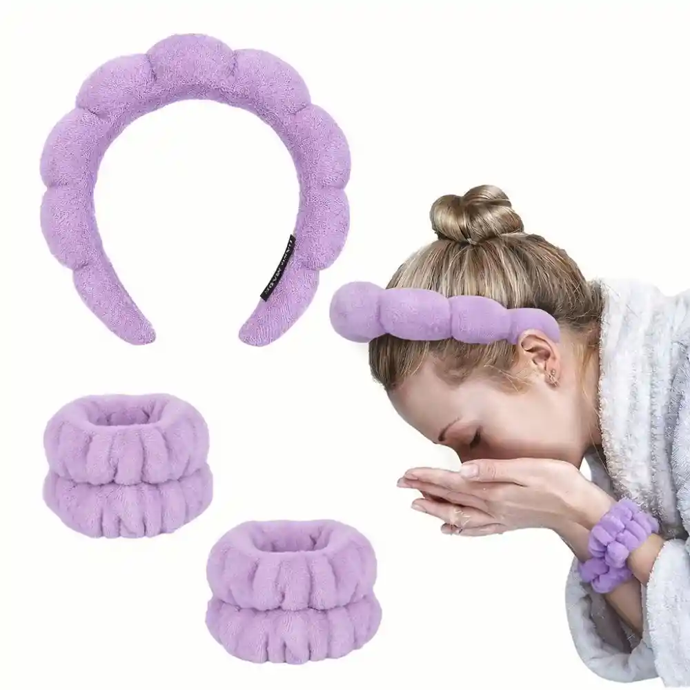 Set de Balaca Acolchada Puffy para Skincare + Muñequeras – Suave, Cómoda y Elegante Incluye: 1 balaca acolchada y 1 par de muñequeras en color lila. Disfruta de tu rutina de cuidado facial con total comodidad gracias a esta balaca acolchada para skincare, diseñada para mantener el cabello perfectamente recogido mientras aplicas tus productos favoritos. Su textura suave y esponjosa es ideal para uso diario, maquillaje, limpieza facial, mascarillas, spa en casa o tratamientos de belleza. No aprieta, no maltrata el cabello y se adapta cómodamente a diferentes tamaños de cabeza. Características principales: - Material suave y acolchado, agradable al tacto - Diseño ergonómico tipo burbuja - No deja marcas ni genera presión - Ideal para skincare, maquillaje y rutinas de belleza - Fácil de lavar y de secado rápido - Apta para todo tipo de cabello Un accesorio imprescindible para tu rutina diaria de belleza. Compra ahora y eleva tu experiencia de skincare con comodidad y estilo. En Lifeglow Store, iluminamos tu vida con productos que inspiran y potencian tu bienestar.