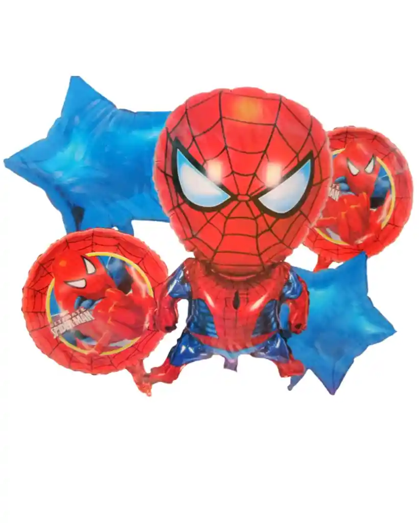 ramillete de spiderman 5 globos en total con aire frio, incluye tarjeta para tu mensaje personal