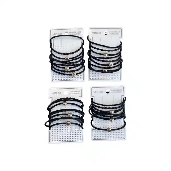 Set Contiene 9 Unidades. Miniso Trae Para ti Set de Ligas Para Cabello Zodiaco. Modo de Uso: Tomar Una Porción de Cabello y Luego Sujetar Con la Moña el Cabello de Acuerdo Con el Peinado Que Desee. Precauciones: Mantener en un Lugar Limpio y Seco Alejado Del Fuego y Sustancias Químicas. Los Niños la Deben Usar Bajo la Supervisión de un Adulto.