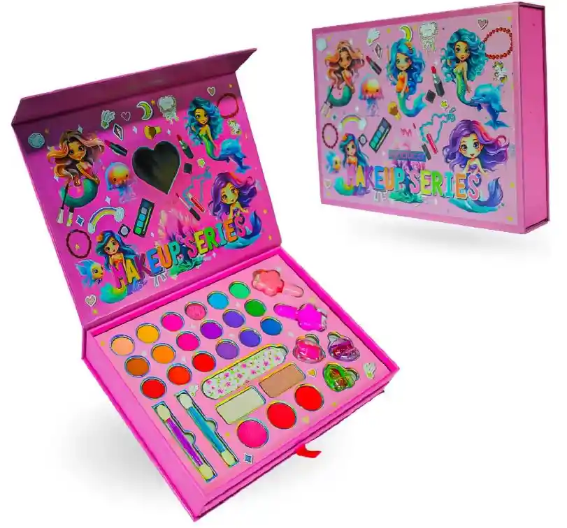 ¡Haz brillar la creatividad de tu pequeña con el Set de Maquillaje Infantil Makeup Series! Este increíble kit incluye 40 piezas entre sombras, labiales, brillos, rubor, brochas y accesorios, organizadas en un estuche de lujo plegable con espejo, ideal para jugar, aprender y divertirse. Es un juguete seguro y pensado especialmente para niñas que aman el mundo del maquillaje, la moda y la fantasía. Su diseño inspirado en sirenas y colores vibrantes convierte este kit en un elemento irresistible para niñas de todas las edades. Perfecto como regalo de cumpleaños, Navidad, celebraciones especiales o para crear momentos mágicos en casa. ¡Tu pequeña podrá organizar todo como una profesional gracias a sus compartimentos y niveles desplegables! BENEFICIOS DEL PRODUCTO Fomenta la creatividad e imaginación Incluye espejo integrado para jugar y maquillarse fácilmente Diseño de lujo tipo estuche rígido, resistente y fácil de transportar Colores vibrantes y variados que encantan a las niñas Perfecto para regalar: presentación hermosa y llamativa Kit completo (40 piezas): sombras, labiales, brillos, rubor, accesorios y más Organización inteligente: niveles plegables y compartimentos dedicados Material seguro para niñas