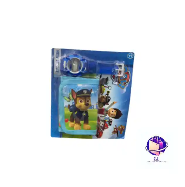 Set infantil que incluye billetera y reloj digital con diseños de los personajes de PAW Patrol como Chase, Marshall o Skye. Fabricado en materiales ligeros y resistentes, ideal para niños fans de la serie. Perfecto como regalo o accesorio escolar.