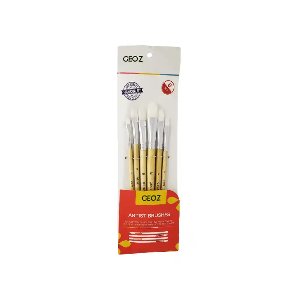 Set de 6 pinceles lengua de gato GO-0111 con cerdas sintéticas y mangos de madera. Ideales para difuminar, mezclar y detallar en pintura.