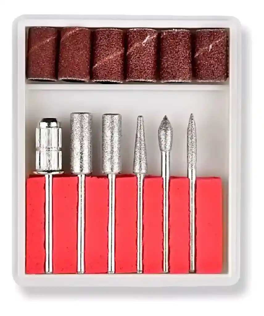 ¡Bienvenid@ a Disho! Tu tienda digital. Productos seleccionados para simplificar tu vida. Envíos a todo Colombia. Las fotos son de referencia. El color y el modelo pueden variar según disponibilidad, sin afectar las funciones ni la calidad del producto Ideal para profesionales y aficionados de la manicure, este set incluye puntas metálicas y bandas de lija para pulidor de uñas. Compatible con la mayoría de los drills eléctricos, permite realizar trabajos de limado, pulido y acabado con precisión. ESPECIFICACIONES - Incluye 6 puntas metálicas de diferentes formas y tamaños. - 6 bandas de lija para limado y acabado. - Presentación en estuche plástico organizador. RECOMENDACIONES DE USO Perfecto para uso en salones de belleza o en casa. Recomendado para manicura, pedicura y trabajos de detalle en uñas acrílicas y naturales. INCLUYE - 6 puntas metálicas - 6 bandas de lija - Estuche organizador GARANTIA por defectos de fábrica. No cubre mala manipulación del producto; Todos los costos de devolución por garantía estarán a cargo del comprador. Puedes ver todos nuestros productos en el siguiente link www.disho.co