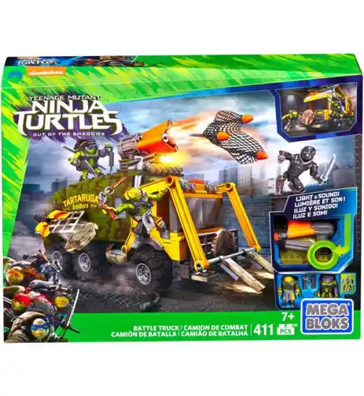 En su nueva película, ¡las Tortugas Ninja toman las calles al volante de este camión de la basura Mega Bloks! Nada conseguirá detener a Donnie ni a Mikey tras construir su vehículo de asalto "tortu-ficado", ¡igual que el de la película! ¡Ataca al soldado del Pie con un increíble arsenal que incluye un lanzador de tapas de alcantarilla, un lanzador de redes y unos brazos móviles de montacargas! ¡En el techo del vehículo, hay una trampilla que se puede abrir para introducir una minifigura de acción articulada de las Tortugas Ninja en el asiento del conductor, mientras la otra controla el lanzador giratorio con sonidos y luces LED activadas por sensores! ¡Ahora podrás acabar con ese soldado del Pie para siempre! ¡Conéctalo a otros conjuntos de juego Mega Bloks de las Tortugas Ninja y construye escenas de combate inspiradas en la película! Ideal para niños a partir de 6 años.