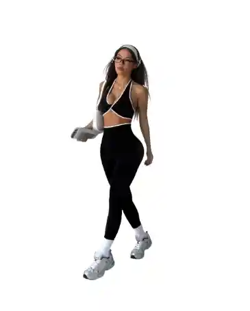 Set deportivo negro con detalles en blanco – Comodidad y estilo activo Perfecto para entrenar, caminar o simplemente lucir un look sporty chic con actitud. Top deportivo negro con ribete blanco, corte cómodo y soporte ligero Leggings de tiro alto, ajustados y flexibles para libertad de movimiento Ideal para rutinas fitness, salidas casuales o sesiones de fotos con estética atlética Un conjunto que combina funcionalidad y moda. ¡Muévete con estilo!
