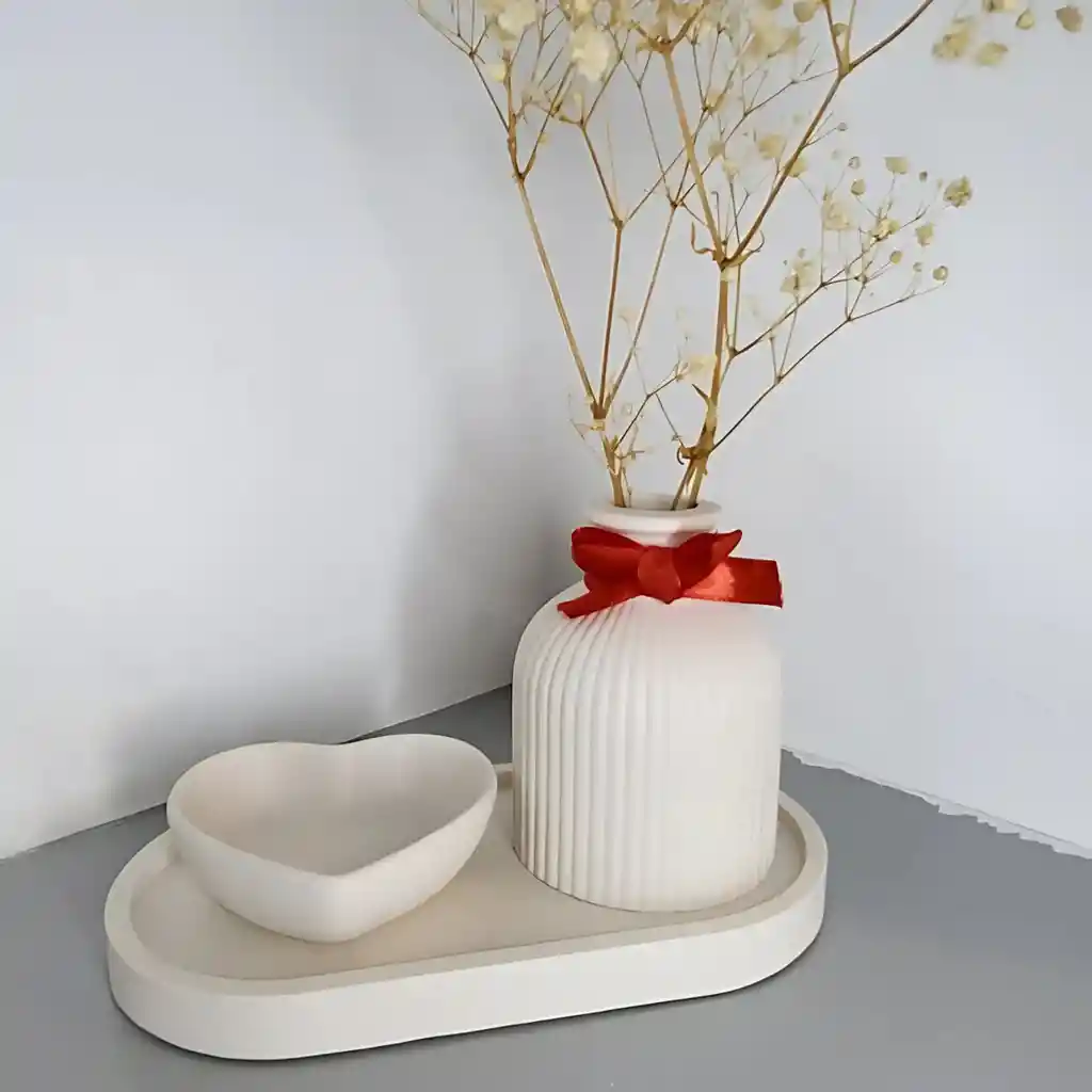Set Florero, bandeja y recipiente corazón Material concrero color blanco