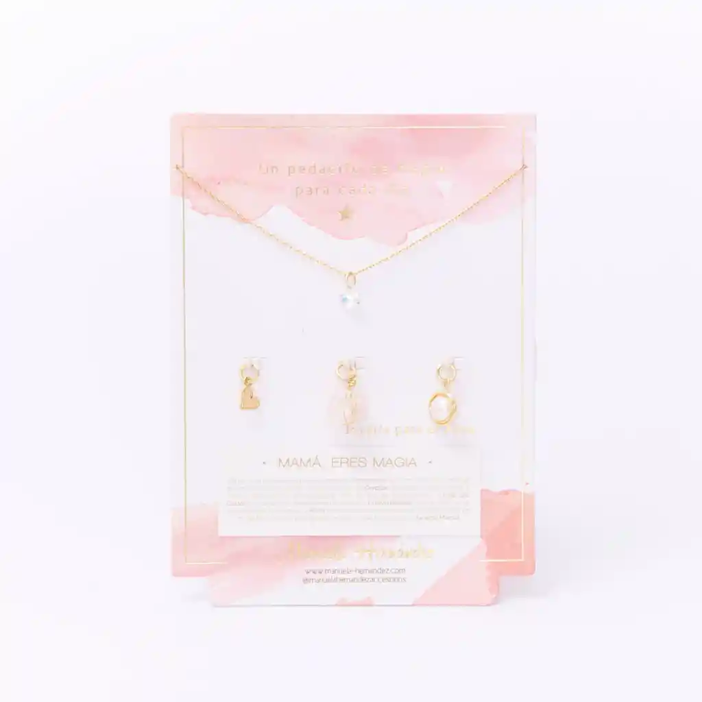 Este set es un “te amo” en forma de joya. Mamá, eres magia celebra todo lo que ella es: amor que sostiene, calma que abraza y fuerza que guía. Incluye una cadena con un dije central y 4 dijes intercambiables para que tu mamá los use juntos o por separado y cree distintos looks según su día: más delicado, más luminoso o más protector. Un regalo que no solo se ve bonito… se siente como hogar. CARACTERÍSTICAS DE TU PRODUCTO: -Set: 1 cadena + 4 dijes intercambiables. -Incluye 4 dijes para combinar y usar juntos o separados para lograr varios looks diferentes. -Inspiración: amor, luz y protección para mamá. -Ideal para regalar en Día de la Madre, cumpleaños o como detalle especial. -Presentación lista para regalo. -La cadena y los apliques dorados cuentan con Baño de Oro 18k. -Elaborado con Cristal Swarovski y Perlas Naturales Cultivadas en agua dulce. -Longitud del collar: 45 cm.