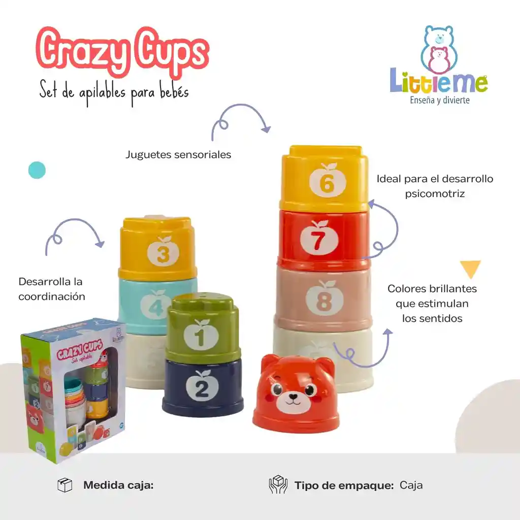 "Set de apilables y encajables 10 vasitos de diferentes tamaños, colores y numeros con variadas figuras en la parte inferior Ideal para el desarrollo Psicomotriz y la coordinación viso - manual Ayuda a ejercitar la capacidad de agarre "