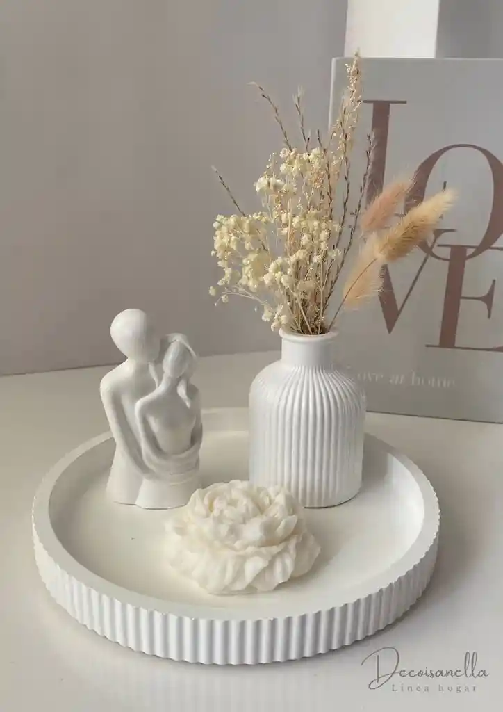 set regalo, bandrja, vela rosa, florero y escultura pareja Material concreto vela de soya