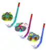Bestway Lil' Animal (referencia 24059), diseñado específicamente para niños pequeños. Detalles del producto Edad recomendada: Principalmente para niños de 3 años en adelante. Contenido del set: Incluye una máscara de buceo con diseños de animales (como dinosaurio, mono o cebra) y un tubo de esnórquel a juego. Características de la máscara: Lentes: Fabricadas en policarbonato con protección UV, lo que las hace resistentes a impactos y seguras para los ojos. Ajuste: Posee una tira de sujeción doble totalmente ajustable para evitar filtraciones de agua. Material: Borde de la máscara diseñado para un ajuste preciso y cómodo al rostro del niño. Características del tubo: Boquilla suave y cómoda, diseñada para el tamaño de la boca infantil.