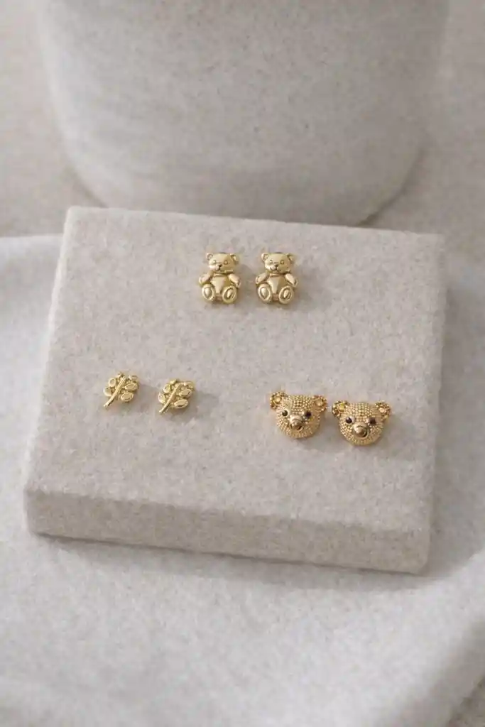 Set de 3 topitos mini ositos , Cabezas de ositos y Hojas , material cover gord