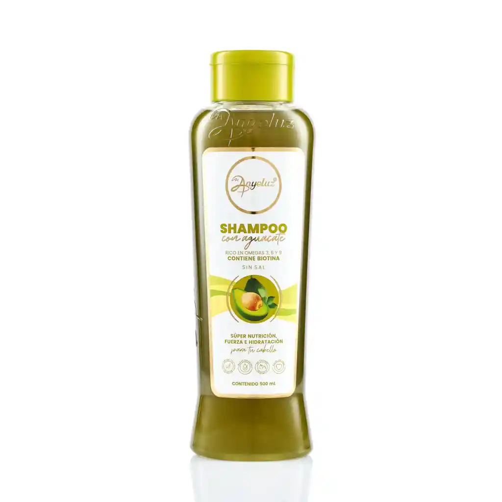 El Nuevo Shampoo con Aguacate llega a la línea capilar de Anyeluz, rico en Omegas 3, 6 y 9, contiene biotina y no tiene sal. Ideal para darle una súper nutrición, fuerza e hidratación a tu cabello. Beneficios: El aguacate es una fruta alta en potasio, magnesio, vitamina A, C, E y B6, sus grasas son naturales por lo que mantiene el cabello hidratado, fortalece la raíz, sirve para la regeneración capilar y protege el cabello de los rayos de luz solar o los excesos de temperatura de la plancha. Repara y protege: Al ser rico en nutrientes y ácidos grasos hidrata, repara y protege la fibra capilar maltratada y previene el daño en los cabellos sanos. Da brillo y suavidad: El aguacate para el cabello es una excelente dosis de aceites naturales, que recubren y sellan la cutícula capilar, haciéndola más suave y brillante. Controla el frizz: Debido a sus propiedades humectantes, el aguacate combate la porosidad y la silla de las hebras capilares, haciéndolas menos propensiones al encrespamiento. Previene el envejecimiento capilar prematuro: Gracias a su concentración de vitamina E, el aguacate para el cabello es una gran fuente de antioxidantes. Estos, promueven la reestructuración celular, ayudando a preservar la vitalidad del cabello. Promueve el crecimiento: Su alta dosis de ácido fólico y vitaminas del complejo B, nutre y fortalece los folículos pilosos, promoviendo el crecimiento y evitando la caída. ETOMEGA: Exclusiva y exótica mezcla de aceites que combina las propiedades calmantes, y antioxidantes del aceite de semilla de Chía con las poderosas propiedades nutritivas del aceite de Sacha Inchi. Está cargado con un elevado contenido en ácidos grasos polinsaturados, especialmente concentrado en ácido α - linolénico (Ω 3), ácido linoleico (Ω 6) y ácido oleico (Ω 9). Además, cuenta con una alta concentración de tocoferoles (delta y especialmente gamma, que no se encuentran en otros aceites botánicos). Capacidad de reducir la rotura capilar. Restaura la barrera capilar. Aumenta el brillo del cabello. Previene el daño solar del cabello. Protege el color. Mejora la comodidad del cuero cabelludo calmando la sensación de picazón. Mantiene la humedad. BIO CAPIGEN VEG V2: Compuesto de proteínas de soja hidrolizada, cebolla roja, extracto de Ginseng, Vitaminas del grupo B, sulfopéptidos, glucosa y amino-ácidos que está diseñado para reducir la caída del cabello y estimular su crecimiento. Disminuye la tasa de caída del cabello y estimula su crecimiento. Refuerza el metabolismo celular. Estimula la microcirculación en la cabellera. Disminuye la sensación de grasa en el cabello, la seborrea y la caspa. Revitaliza las fibras capilares. Modo de uso: Aplicar en el Cabello en forma de masajes circulares con la yema de los dedos y dejarlo actuar por 3 minutos masajeando suavemente, enjuagar y repetir si es necesario.