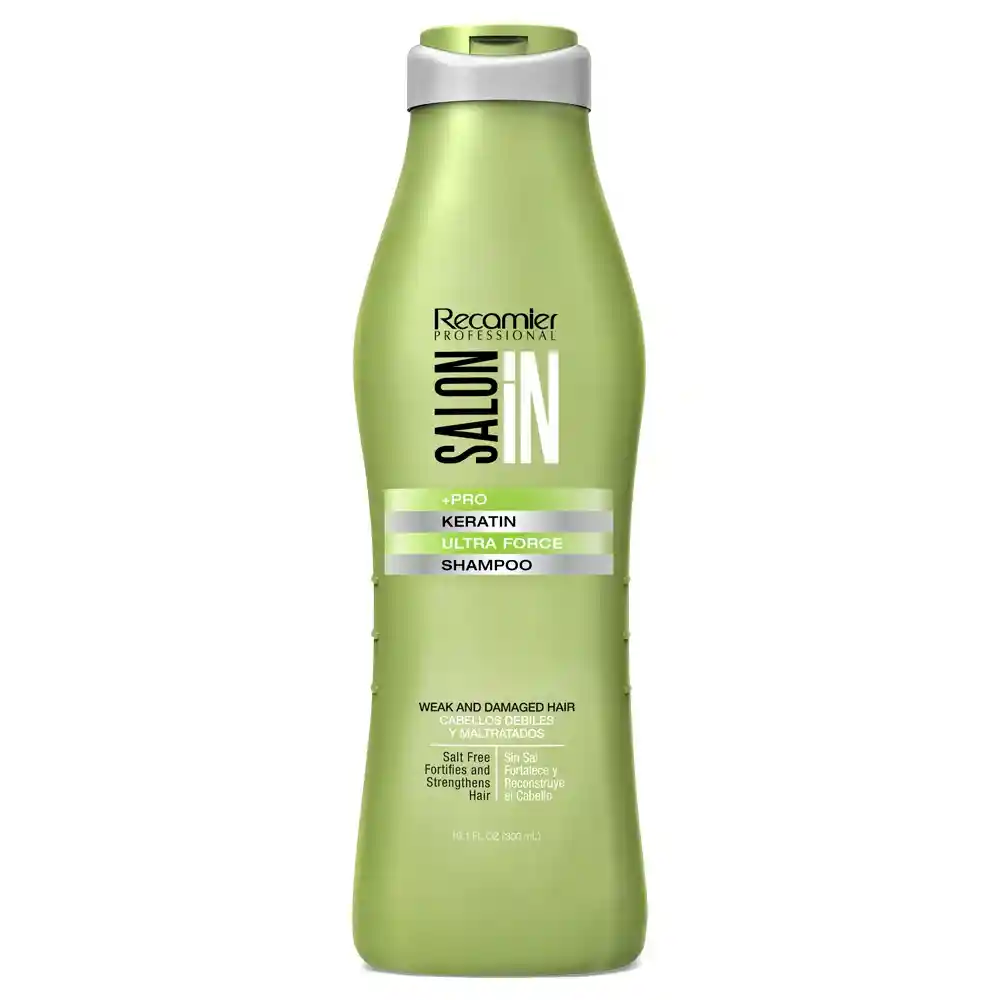 El Shampoo Keratin Ultra Force Salon In Recamier X300 ML Sin Sal está formulado para limpiar suavemente el cabello mientras fortalece y reconstruye los cabellos débiles y maltratados. Su fórmula sin sal es ideal para proteger la fibra capilar y mejorar su resistencia, dejando el cabello más saludable y manejable. Ingredientes Keratina: Proteína principal del cabello que fortalece su estructura, aportando nutrición y restauración. Aceite de argán: Rico en omega 3, omega 6 y vitamina E, nutre profundamente, revitaliza el cabello y le aporta un brillo saludable. Detalles Limpia suavemente sin resecar el cabello, gracias a su fórmula sin sal. Fortalece y reconstruye la fibra capilar, mejorando su resistencia y vitalidad. Ideal para cabellos débiles, maltratados o tratados químicamente. Aplicación Aplique el shampoo sobre el cabello húmedo. Realice un suave masaje para distribuir el producto uniformemente. Enjuague con abundante agua. Repita la aplicación para mejores resultados. Para un cuidado completo, utilice toda la línea Salon In Keratin Ultra Force.