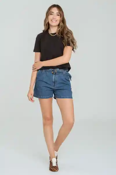 En Denim Liviano 100% Algodón Tiro Alto Tono Oscuro Con Manualidad Pretina Incluida Con Gancho Sastre y Botón Interno Cinturón Con Hebilla Bolsillos en Diagonal y Ribetes en Posterior Detalle de Pinzas en Frente.