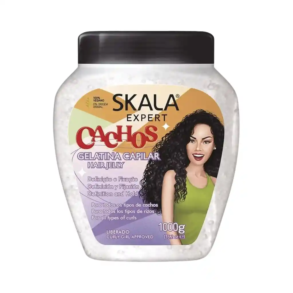 La Skala Gelatina Capilar Cachos 1000 g fue desarrollada especialmente para quienes desean rizos definidos, con movimiento natural y sin frizz. Su fórmula vegana, libre de sulfatos, siliconas, parabenos y petrolatos, combina ingredientes como glicerina, aloe vera, linaza, pantenol y vitamina E, que ayudan a hidratar y nutrir el cabello mientras lo moldean y fijan. Gracias a su textura ligera tipo hair jelly, define y controla los rizos sin dejar el cabello duro ni pegajoso, aportando elasticidad, brillo y una apariencia saludable, siendo ideal para cabellos ondulados, rizados o crespos que buscan definición duradera y control del frizz.