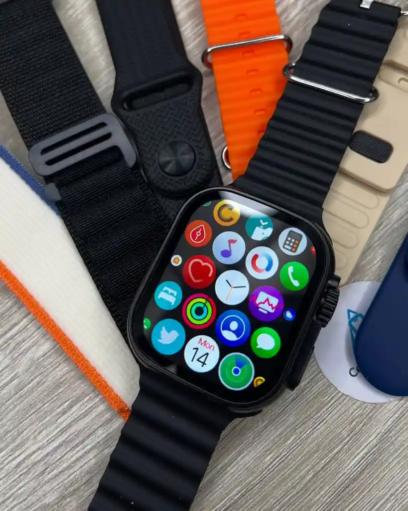 Smartwatch + 7 manillas ✅ Notificaciones y lector de mensajes (WhatsApp, Facebook, Instagram.) ✅ Llamadas: marca, contesta y habla desde el reloj ✅ Pantalla Full HD con alta resolución ✅ Recordatorio para tomar agua 💧 ✅ Resistente a salpicaduras ✅ Carga inalámbrica 🔋 ✅ Fondos de pantalla personalizables ✅ Compatible con Android y iOS ✅ Modo deporte: caminar, correr, ciclismo y más ✅ Control remoto de música 🎶 ¡No dejes pasar esta oferta!