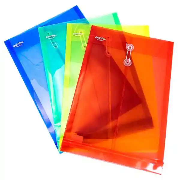 SOBRE PLÁSTICO YOYO TAMAÑO OFICIO VERTICAL Y HORIZONTAL. DISPONIBLE EN COLORES, MATERIAL RESISTENTE CON CIERRE SEGURO. IDEAL PARA ORGANIZAR Y PROTEGER DOCUMENTOS.