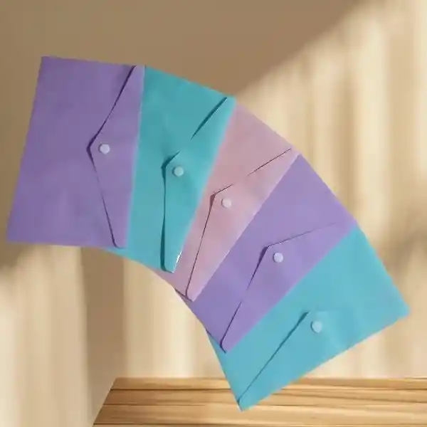 Los sobres plásticos organizadores, son ideales para guardar, productos pequeños, documentos, cartas, dinero, fotografías, facturas, recibos…etc. Son una opción eficiente, practica, resistente y económica que protege el contenido, no ocupan espacio, tienen cierre a presión fácil de abrir y cerrar, lindos colores, y resistentes al agua y la humedad.