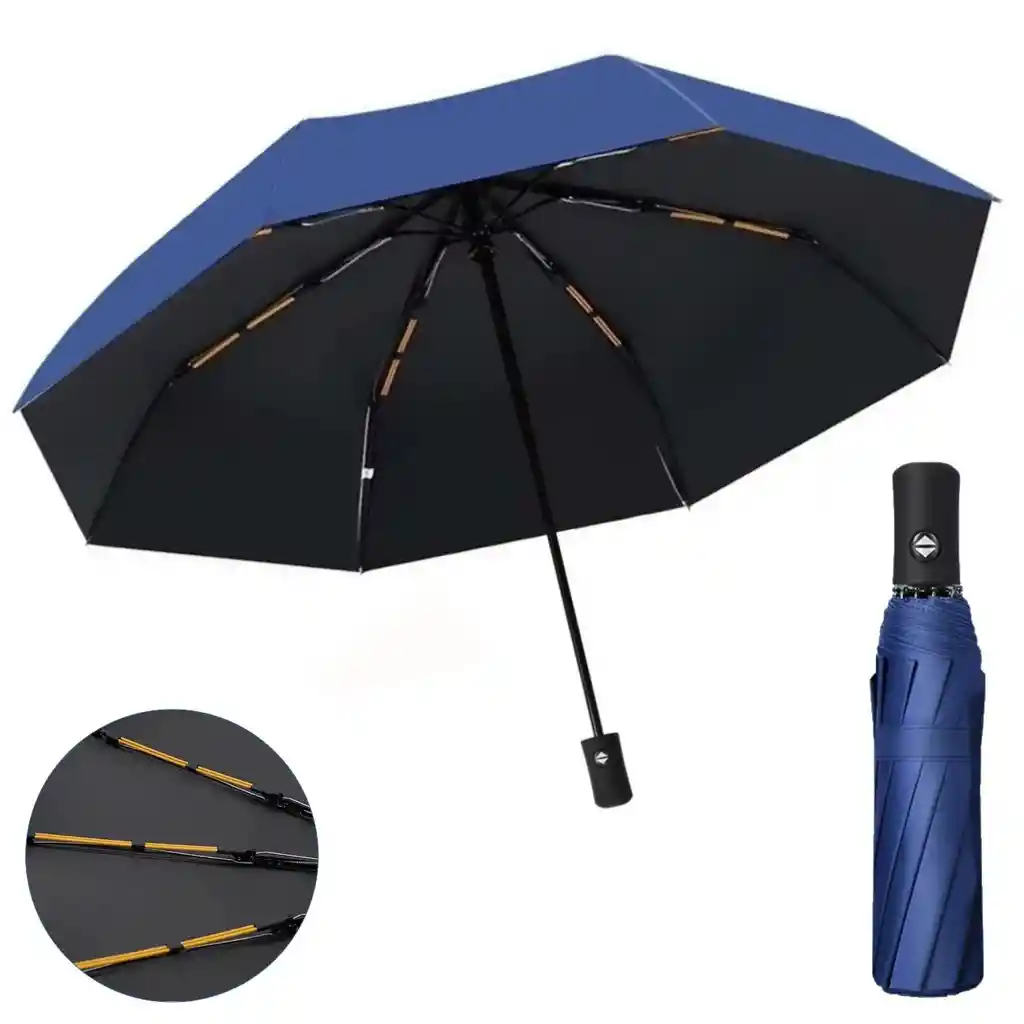 - Estructura Anti-viento Superior: Incorpora 8 varillas de fibra de vidrio premium y cuenta con un sistema de doble varilla reforzada para garantizar la máxima resistencia al viento. Tu paraguas permanecerá intacto incluso en ráfagas fuertes. - Peso Ligero: Solo 400 gramos. - Tamaño Cerrado: 29 cm de largo. - Diámetro Abierto: 100 cm de cobertura (ideal para una persona).