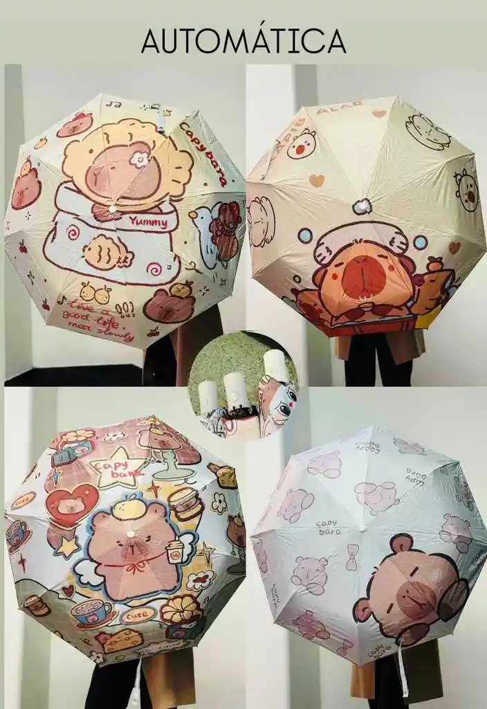 Disfruta del sol y la lluvia sin preocupaciones con nuestra Sombrilla automática Capibara Impermeable Anti UV Plegable. Con un diseño único y divertido de capibara, esta sombrilla no solo te protegerá de la lluvia, sino que también bloqueará los dañinos rayos UV, brindándote una excelente protección durante los días soleados. Características principales: -Protección UV: Su tecnología de tela bloquea hasta un 99% de los rayos ultravioleta, manteniéndote fresco y protegido. Impermeable: Perfecta para cualquier clima, esta sombrilla es resistente al agua, ideal para días de lluvia o soleados. Plegable y Compacta: Su diseño plegable te permite llevarla cómodamente en tu bolso o mochila, perfecta para llevar a todas partes. -Diseño único de Capibara: Dale un toque divertido y original a tus accesorios con el adorable diseño de capibara. Ligera y fácil de usar: Se abre y cierra de manera automática, asegurando una experiencia cómoda en todo momento.
