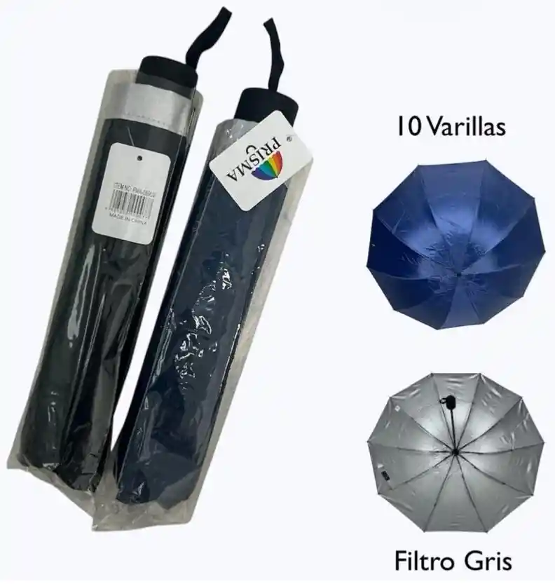 Varillas: Cuentan con 10 varillas, lo que sugiere una estructura reforzada y resistente al viento. Colores: Di... Ver más
