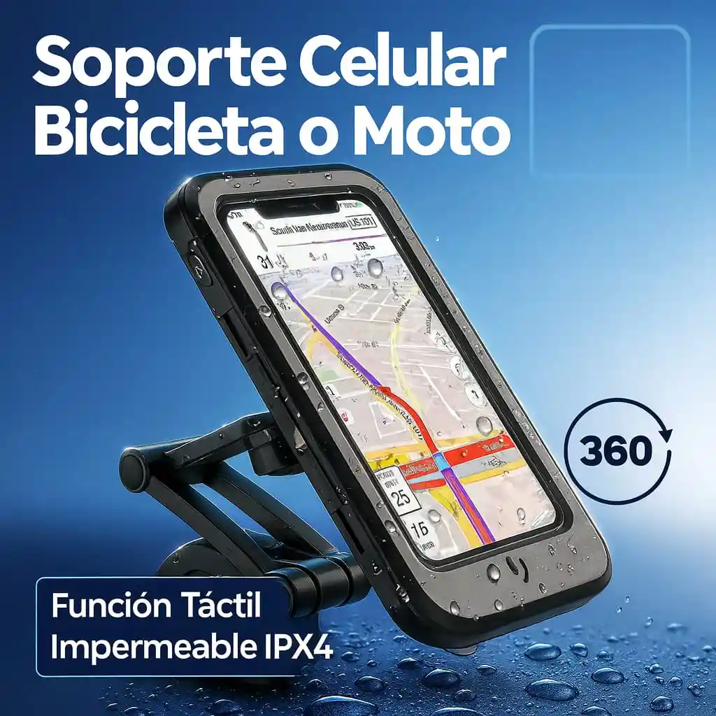 📱 Soporte Celular Impermeable para Moto y Bicicleta Lleva tu celular de forma segura y práctica mientras conduces 🚴🏍️. Este soporte impermeable está diseñado para proteger tu dispositivo y brindarte comodidad en todo momento. Características principales: 💦 Impermeable IPX4: protege tu celular de salpicaduras de agua y lluvia ligera. 📏 Compatibilidad: apto para teléfonos de hasta 6.7”. ✨ Función táctil: utiliza la pantalla sin necesidad de sacar el celular. 🎧 Ranura especial para audífonos y cable de carga. 🔄 Rotación 360°: ajusta el ángulo de visión a tu preferencia. 💪 Brazo extensible: regulable entre 4.5 cm y 19 cm, ideal para distintos manillares. 📐 Dimensiones: 19.5 × 10 × 2 cm. 🧲 Imán integrado para mayor estabilidad del teléfono. Usos recomendados: Perfecto para navegar con GPS durante tus recorridos. Ideal para escuchar música o atender llamadas con manos libres mientras conduces. Protege tu celular en trayectos urbanos o viajes largos. Con este soporte tendrás seguridad, practicidad y resistencia en cada viaje 🚀.