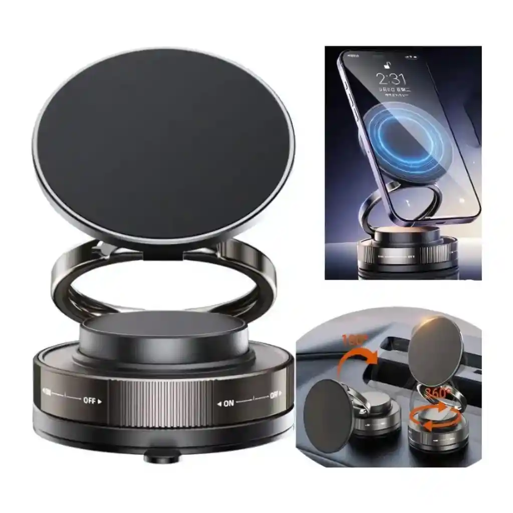 Somos TELEPRODUCTOS BOGOTA Productos 100% garantizados, años de experiencia en ventas online.! -Cuando realices la compra recibirás toda la información de contacto y datos para que puedas hacer seguimiento a tu producto.! ----------------------------------------------------------------------------------------------------------------------- Soporte magnético de vacío para teléfono para automóvil MONTAJE VERSÁTIL: La base de succión al vacío fuerte se fija de forma segura a superficies lisas como salpicaderos de automóviles, espejos, ventanas y otras superficies planas Rotación de 360 grados: la rótula totalmente ajustable permite un control direccional completo y ángulos de visión para orientaciones verticales y horizontales Compatibilidad universal: el diseño de montaje magnético funciona con todos los tamaños y modelos de teléfonos inteligentes, manteniendo los dispositivos firmemente en su lugar mientras conduces INSTALACIÓN RÁPIDA: El proceso de fijación simple de un solo paso no requiere herramientas, con mecanismo de liberación fácil para una extracción rápida cuando sea necesario Construcción resistente: los materiales duraderos y las juntas reforzadas garantizan un soporte estable del teléfono, evitando que se tambalee o se mueva durante el funcionamiento del vehículo Cuenta con características magnéticas y de ventosa para una fijación estable. Permite liberar las manos del usuario para mejorar la experiencia de la vida diaria