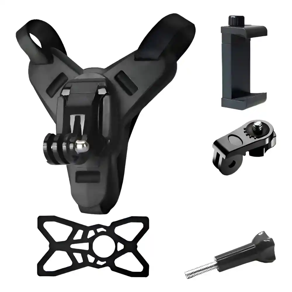 Nuestro soporte fabricado en plástico y metal de buena calidad, sólido y duradero. Compatible con cualquier casco integral y cámara deportiva con soporte y también con celular entre 65 a 100 mm. El soporte para teléfono celular en casco de moto es la solución ideal para los entusiastas de las motocicletas que desean capturar cada momento de su aventura. Diseñado específicamente para adaptarse a la mayoría de los cascos, este soporte permite una instalación sencilla y segura, garantizando que tu dispositivo permanezca en su lugar mientras conduces. Con una construcción robusta y materiales de alta calidad, este soporte asegura la estabilidad de tu teléfono incluso en las condiciones más exigentes. Su diseño aerodinámico minimiza la resistencia al viento, permitiendo que te concentres en la carretera mientras grabas tus trayectos o utilizas aplicaciones de navegación. El soporte proporciona el ángulo perfecto para disparar en punto de vista. Diseño antideslizante y de una sola pieza, soporte estable, cinturón ajustable es de fácil acceso a la cámara de acción montada o para el montaje de celular. DISEÑO Cuenta con un diseño de correa, el soporte se puede fijar en la posición de la barbilla de tu casco de cara completa. Ajusta la tensión con la hebilla y lo suficientemente fuerte como para asegurar la cámara en el gancho tipo J, el gancho en J en el soporte de la barbilla se puede conectar con varias cámaras de acción deportivas, conveniente para instalar y quitar y también podrá colocar el adaptador para soporte de celular.