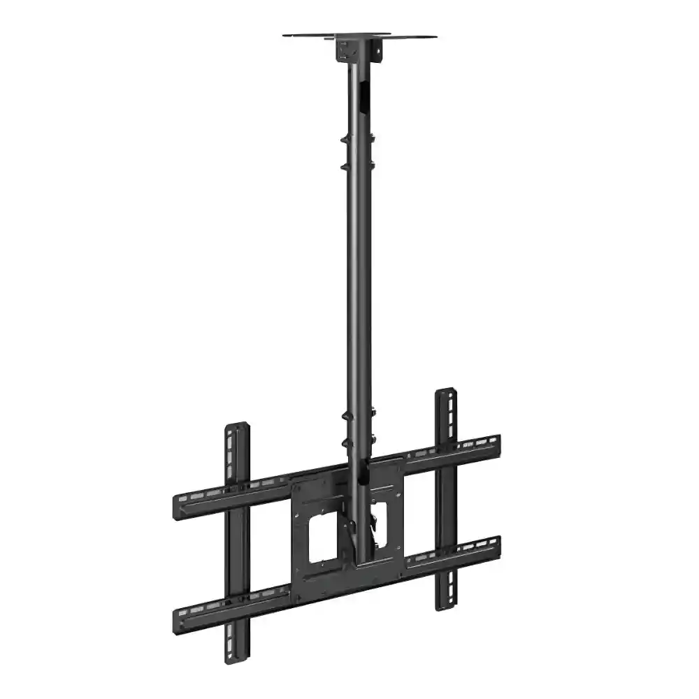 Descubre el soporte para televisor de techo, ideal para pantallas de 25" a 55". Su diseño elegante y moderno, revestido con pintura electroestática, no solo aporta estética, sino también durabilidad. Este soporte es compatible con pantallas LCD, LED y plasma, lo que lo convierte en una opción versátil para cualquier hogar. Su construcción robusta en acero garantiza una firmeza y estabilidad excepcionales, soportando hasta 68 kg. Además, cuenta con un ajuste de ángulo fácil, permitiendo una mejor visualización. Es inclinable y articulado, adaptándose a tus necesidades. La gestión de cables oculta los cables dentro del poste telescópico de aluminio, manteniendo un entorno ordenado. Perfecto para quienes buscan funcionalidad y estilo en su espacio.