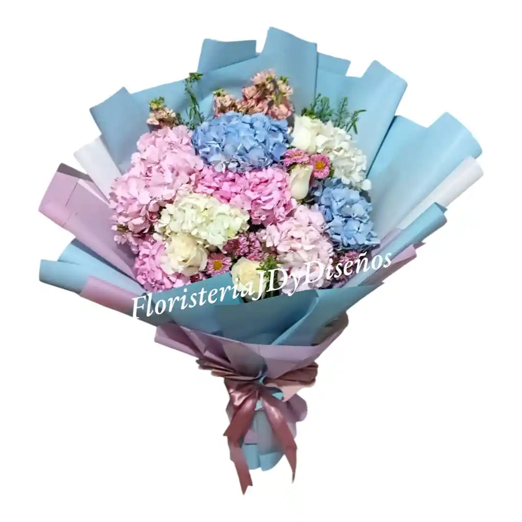 BOUQUET POR DEN ORTENCIAS Y FOLLAJES, FOLLAJES (SIEMPRE VIVA)