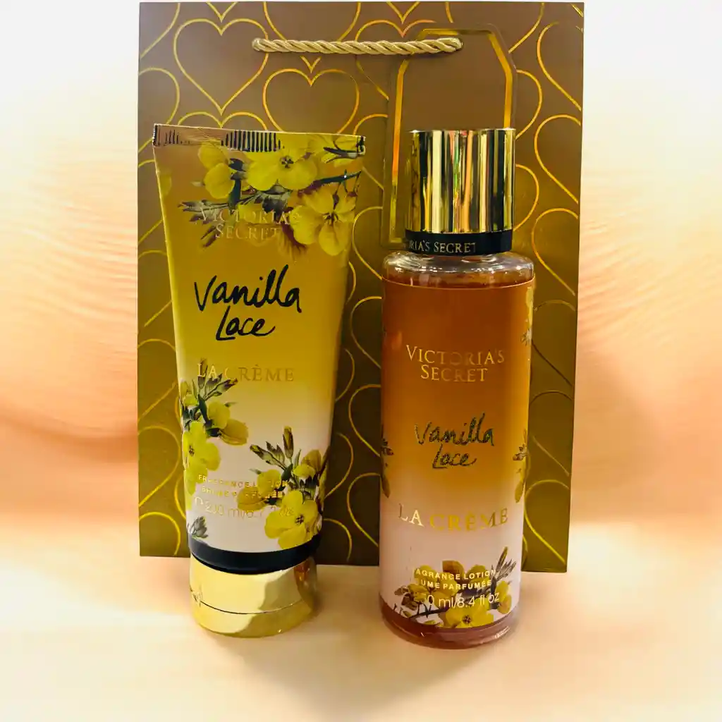 contiene  1 splash de victoria's secret  1 crema de manos de victoria's secret  bolsa regalo