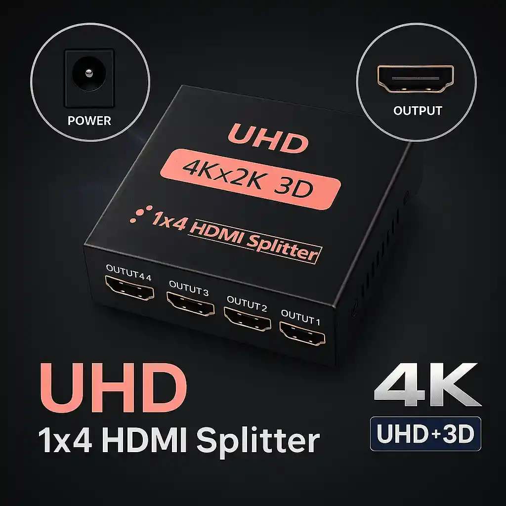 📦 Splitter HDMI 1x4 | Resolución 4K y Soporte 3D | Versión 1.4B Este divisor HDMI es ideal para duplicar la señal de una sola fuente HDMI a dos o hasta cuatro pantallas simultáneamente, sin pérdida de calidad. Compatible con dispositivos como DVD, consolas (PS, Xbox), PC, proyectores, decodificadores y más. Características destacadas: • 🔌 Entradas: 1 puerto HDMI • 📺 Salidas: 4 puertos HDMI. • 🎥 Resolución soportada: hasta 4K (3840x2160) a 30Hz y Full HD 1080p • 🌈 Compatible con 3D y formato de video Deep Color • 🔄 Soporta frecuencia vertical de 60Hz / 85Hz • 💡 Indicadores LED por puerto • ⚡ Ancho de banda de hasta 4.95 Gbps • 🔒 Compatible con HDCP • 🔧 HDMI versión 1.4B Aplicaciones comunes: • Conecta un solo dispositivo (como consola, PC, decodificador o reproductor Blu-ray) a múltiples pantallas o proyectores al mismo tiempo. • Ideal para tiendas, ferias, conferencias, videovigilancia, aulas y entretenimiento en casa. Nota: No es un switch HDMI (no cambia entre fuentes), es un splitter (duplica señal a varias pantallas).