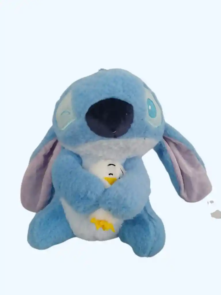 ¡Ternura en cada detalle! Peluche de Stitch de 20cm de alto con expresión de guiño, sosteniendo un pequeño patito. Fabricado con materiales de felpa de primera calidad, increíblemente suaves. Sus orejas grandes y el contraste de colores lo hacen único. Ideal para decorar o abrazar.