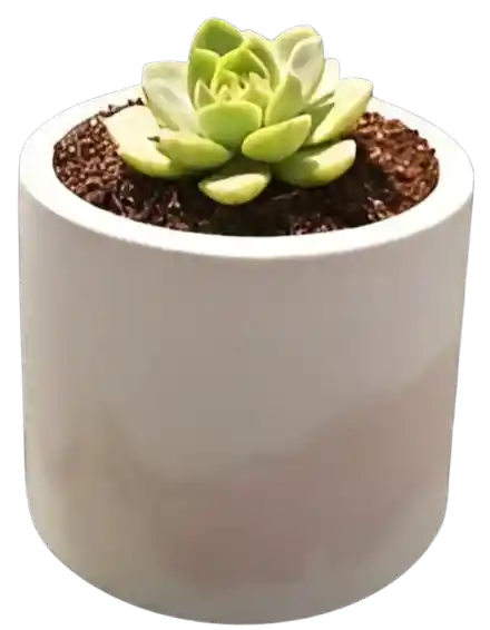 La esencia del minimalismo contemporáneo en una sola pieza. Esta suculenta ha sido cuidadosamente seleccionada por su frescura y forma simétrica, resaltando sobre una matera cilíndrica de concreto artesanal. Su diseño de líneas puras y acabado liso en tono blanco hueso aporta una sensación de orden y luminosidad, convirtiéndola en el complemento ideal para oficinas, estanterías o cualquier espacio que busque un toque de naturaleza moderna. Es una pieza versátil que equilibra la solidez del concreto con la vitalidad de la planta, diseñada para quienes valoran la belleza de lo simple y lo auténtico. Nota: Ten en cuenta que, al ser un producto natural y artesanal, la especie de la suculenta y el matiz del color pueden variar según la disponibilidad, haciendo que cada pieza sea única.