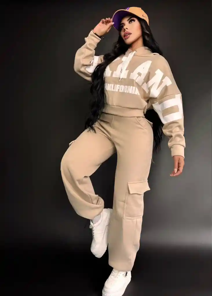 Conjunto "Chicago" Beige – Streetwear Premium Eleva tu look diario con nuestra sudadera tipo hoodie corta y joggers cargo a juego. Diseñado en un tono beige neutro ultra combinable, destaca por su estampado gráfico de alto contraste y un corte holgado que garantiza comodidad sin perder el estilo. ¡El balance perfecto entre lo deportivo y lo chic!