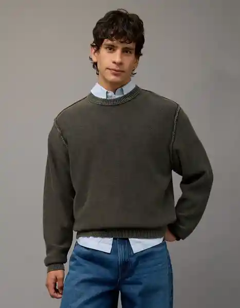 Tejido Suave Lavado Costuras Expuestas Cuello Redondo Puños Cuello y Dobladillo Acanalados..
