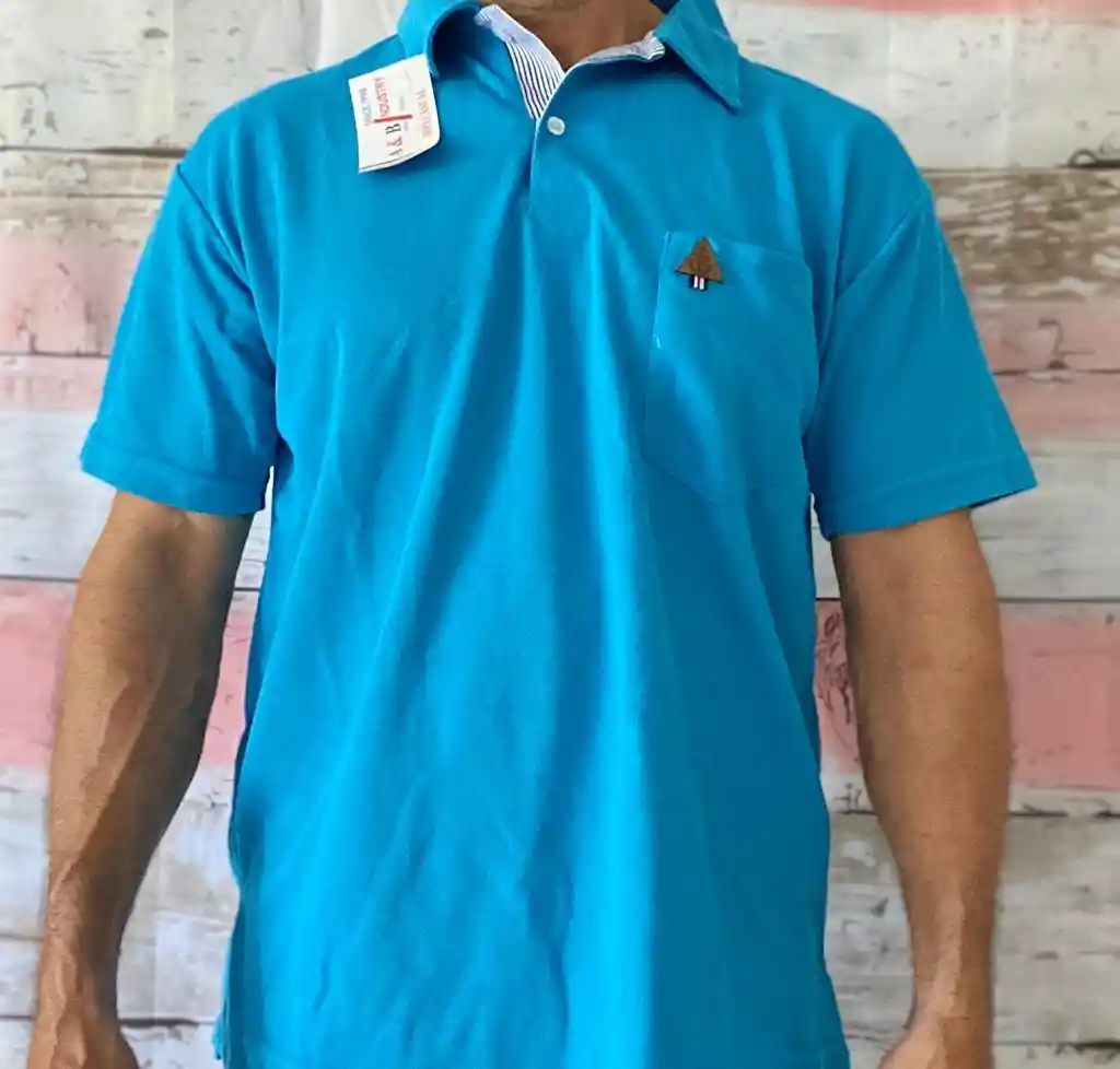 Suéter tipo polo para hombre, con cuello de dos botones, con bolsillo izquierdo, detalle en manga, cuello y bolsillo. Color: Azul Talla: L Tela: algodón suave y fresco. Adecuado para cualquier ocasión, casual, formal, para combinar con bermudas, jeans o pantalón clásico. elegancia que se nota. Presencia que impacta.