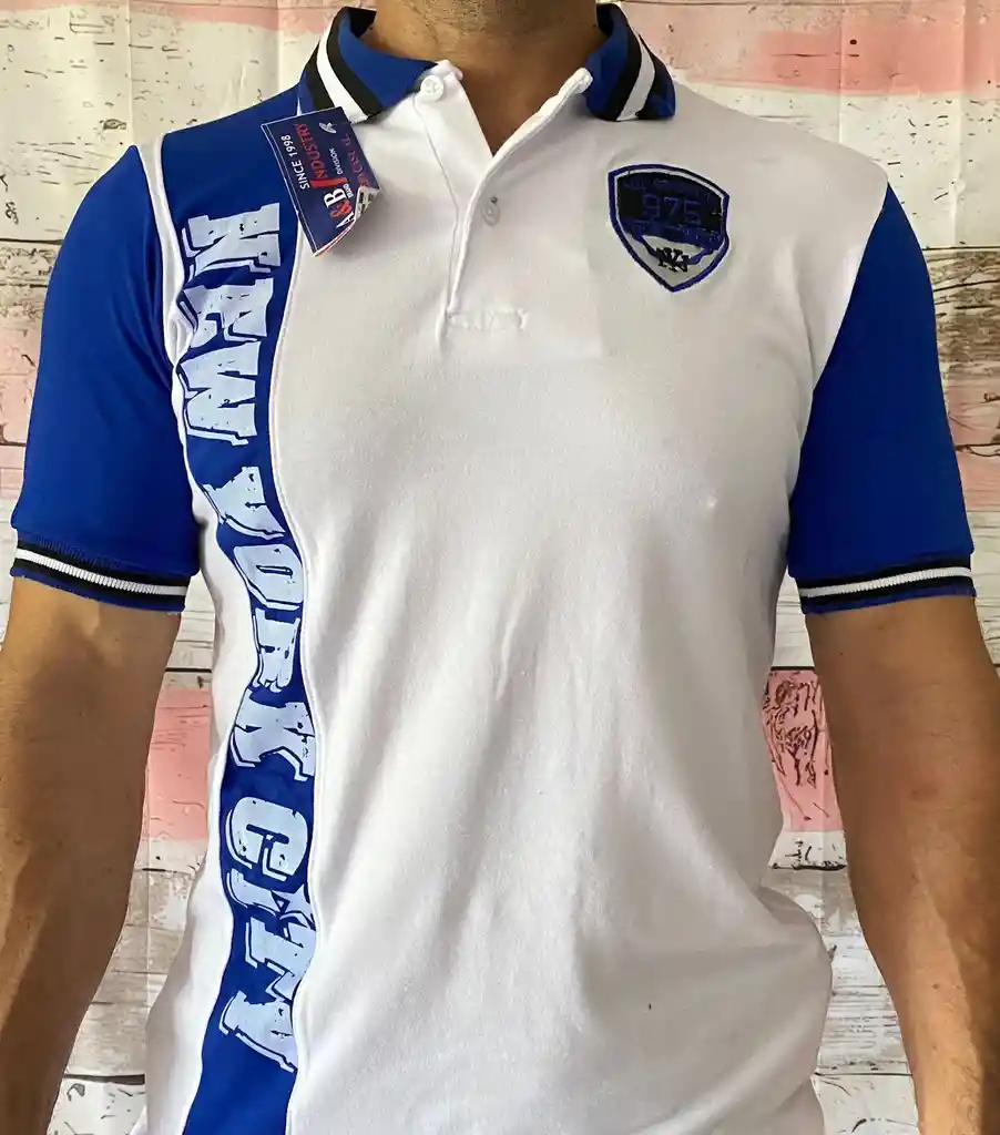 Suéter tipo polo para hombre, con cuello de dos botones, con bolsillo izquierdo, detalle en manga, cuello y bolsillo. Color: Blanca combinado con azul turquí. Talla: M Tela: algodón suave y fresco. Adecuado para cualquier ocasión, casual, formal, para combinar con bermudas, jeans o pantalón clásico. elegancia que se nota. Presencia que impacta.