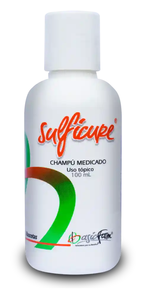 Champu medicado Queratolitico, antibacterial, antifungico y acaricidao. Champu medicado con aloe vera y sulfiram, queratolitico, ideal en procesos mediados por acaros y sus contaminantes secundarios, controla parasitos externos, ezcema , prurito y enfermedades seborreicas Útil como coadyuvante en el tratamiento de patologías cutáneas de origen parasitario en perros y gatos por pulgas, ácaros, micosis cutáneas, dermatitis, eczemas y prurito asociado a ellas. Además en el control de pulgas, pijos y garrapatas Sulfiram , Aloe vera y Acidos grasos de coco Se moja completamente al animal con agua preferiblemente tibia, se esparce el producto en toda la superficie a tratar, se realizan masajes vigorosos por minimo 10 minutos, se enjuaga con abundante agua, se repite minimo dos veces a la semana o a criterio del Medico Veterinario
